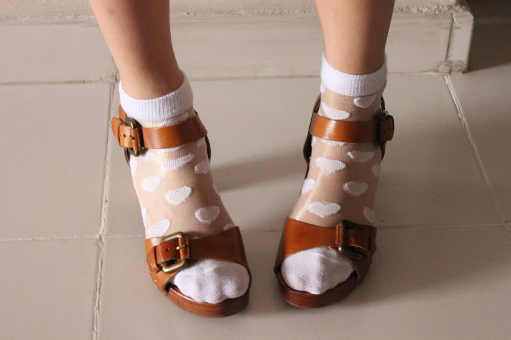It's all the rage now to wear a single, dark coloured pair of sandals/clogs with some quirky-printed socks (think heart shapes or lip prints) but i really don't get it.